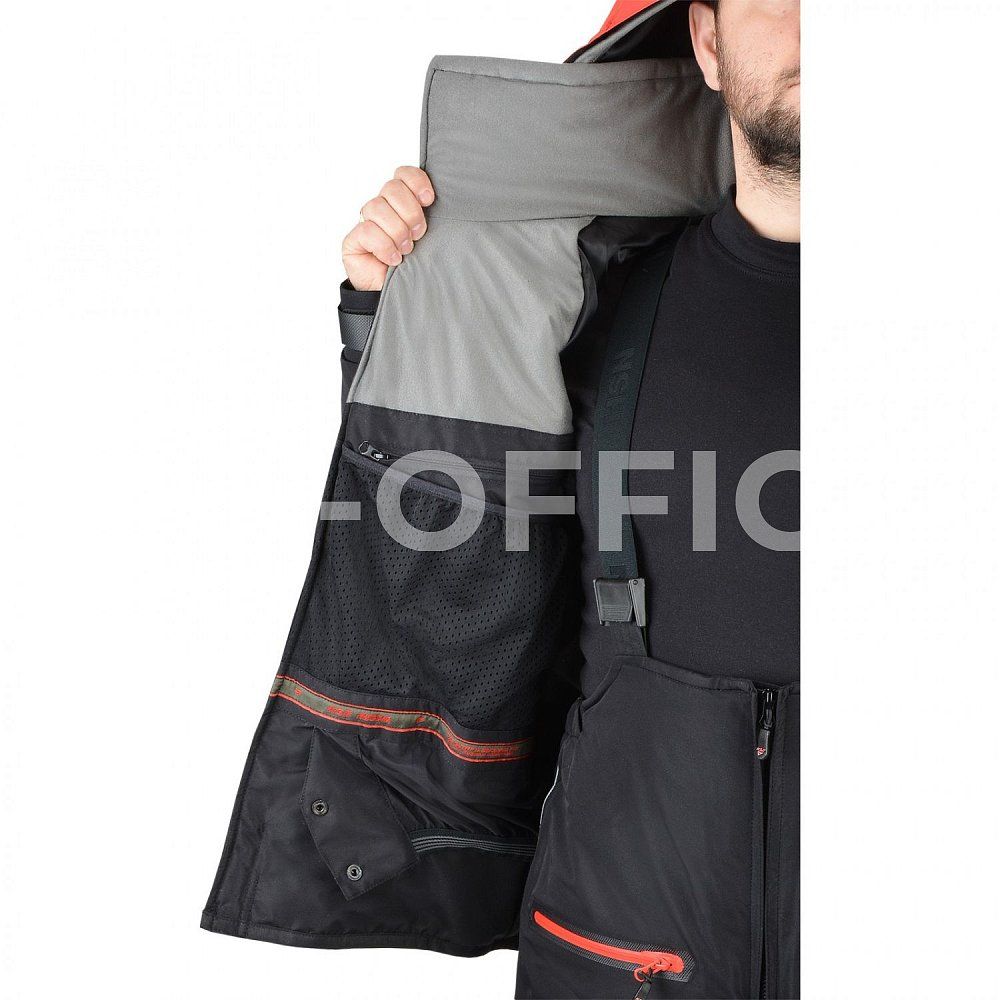Продуманная система межподкладочной вентиляции (молнии в зоне подмышек и на внутренней части полукомбинезона, перфорация материала на подкладе куртки и полукомбинезона) улучшает циркуляцию воздуха и выводит излишнюю влагу от тела, предотвращая образования конденсата.