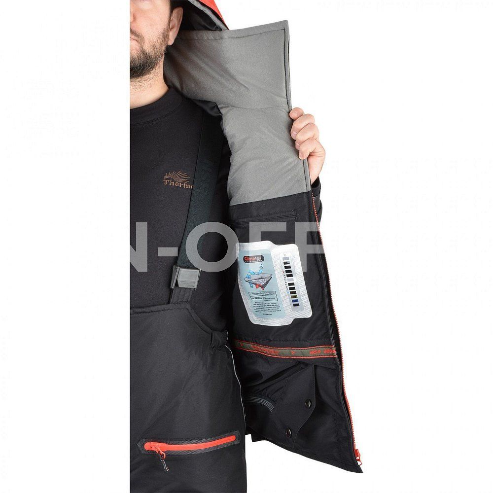 Для безопасной и комфортной рыбалки на передней планке куртки вшита молния для пристегивания страховочного жилета арт. 9729. Удобная опция обеспечивает свободный доступ к внутренним карманам куртки, предотвращает зацеп лески. Ничего не будет отвлекать вас от любимого занятия.