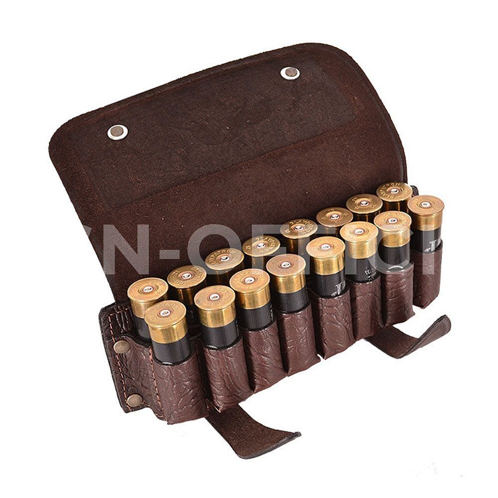Изготовлена в традиционной форме из натуральной кожи. Патронташ надежно держит 16 патронов в лузах.