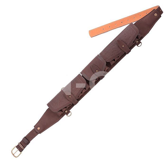 Изготовлен в традиционной форме из натуральной кожи. Патронташ надежно держит 20 патронов в лузах.