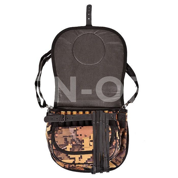В сумке есть специальный сетчатый мешок для дичи. В производстве применяют итальянскую фурнитуру, почти не звенящую и не бликующую, а раскрой изделия выполняется на специальном для этого оборудовании, что обеспечивает отличное качество. Ягдташ состоит из двух отделений, дополнительного кармана для хранения документов и двух патронашей, каждый рассчитан на 18 патронов, также имеет подвеску Утятницу. Ягдташ украшен с помощью миниатюр на тему охоты.