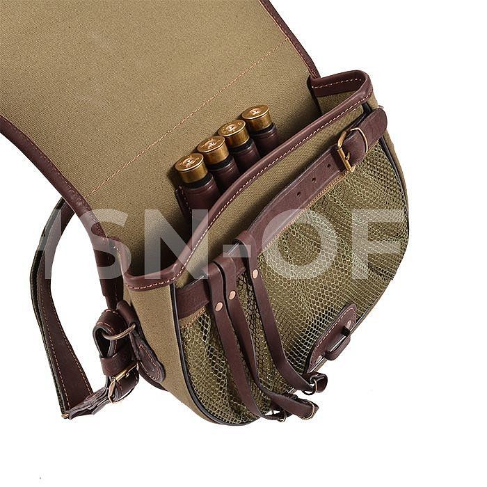 В сумке есть специальный сетчатый мешок для дичи. В производстве применяют итальянскую фурнитуру, почти не звенящую и не бликующую, а раскрой изделия выполняется на специальном для этого оборудовании, что обеспечивает отличное качество. Ягдташ состоит из двух отделений, имеет подвеску Утятницу. Украшения выполнены миниатюрами охотничьей тематики.